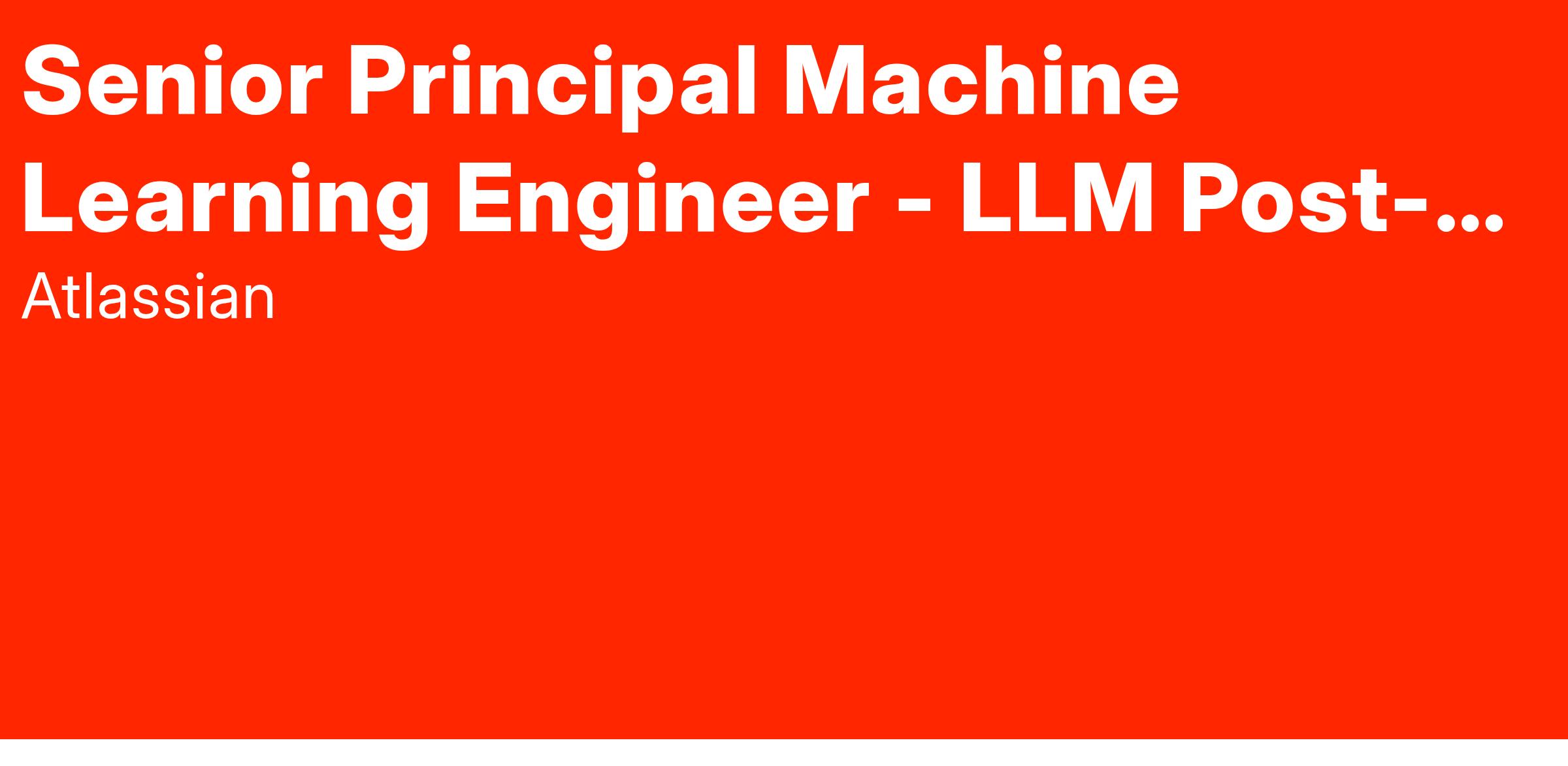 Atlassian is a global leader in team collaboration and productivity software, empowering teams to unleash their potential and achieve remarkable results. Our suite of tools, including Jira, Confluence, Trello, Bitbucket, and Rovo, is trusted by millions of users worldwide to plan, track, and manage their work effectively. At Atlassian, we are dedicated to building innovative tools and technologies that drive the future of work. Weβre seeking a highly skilled and experienced Senior Principle Machine Learning Engineer to propel our efforts in Large Language Model (LLM) post-training and optimization, shaping the future of intelligent, team-centric solutions.